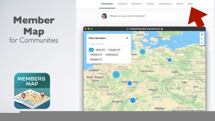Perfect for membership sites, local networks, coaching groups, or global communities, it turns data into a visual experience that boosts engagement and connection.