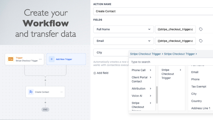 Every time you make a sale, the payment details are instantly pushed into your CRM workflow — no need for webhooks or complex setups.
